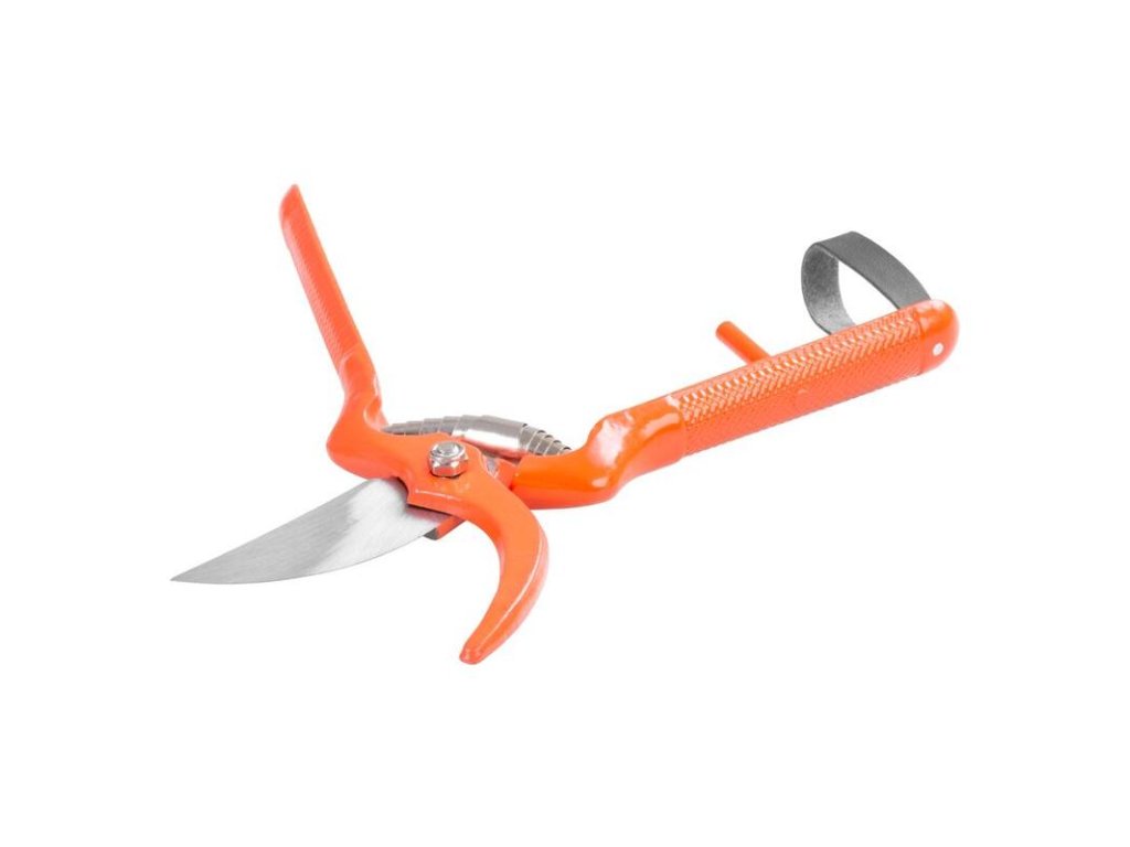 Záhradné nožnice s dĺźkou 250 mm. Vyrobené z vysokouhlikatej ocele 55, kované . Rukoväte sú leštené a lakované na červeno.