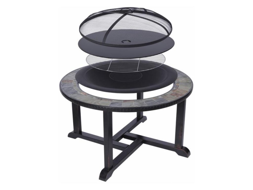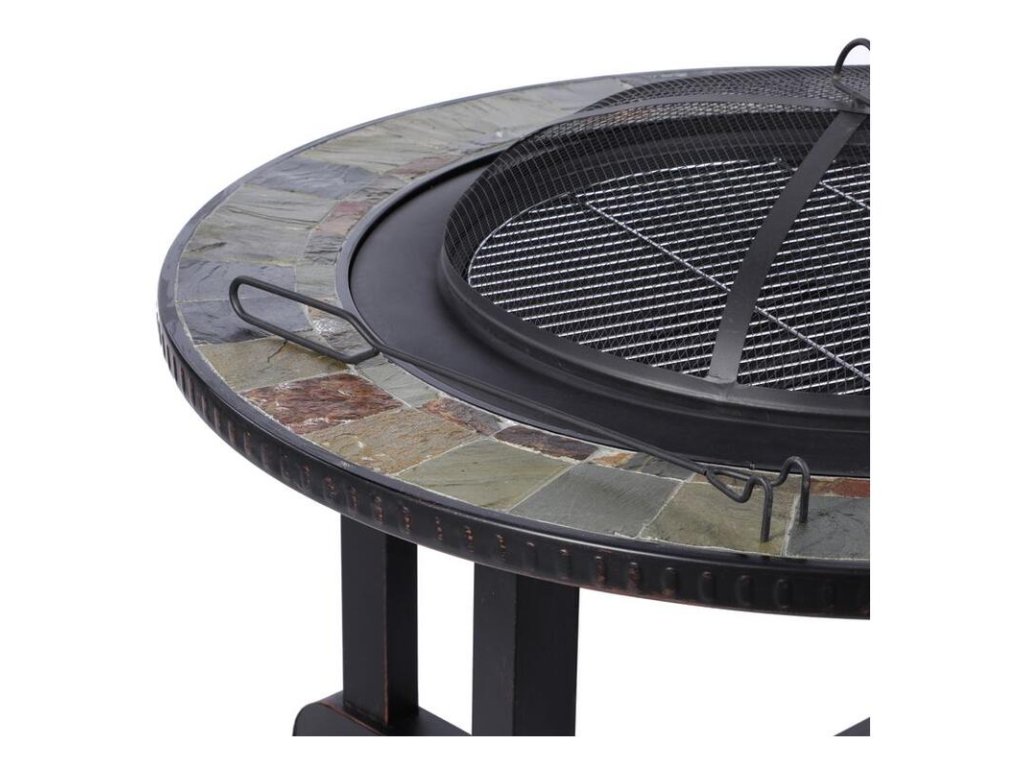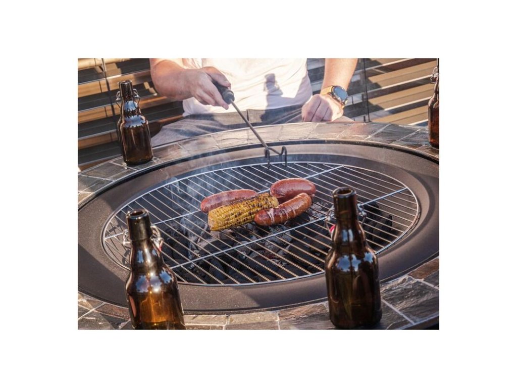 Užite si nezabudnuteľné chvíle s priateľmi a rodinou pri grilovaní s ohniskom Strend Pro. Má využitie 3v1 - ako nádoba na oheň, klasický gril a stôl. V kovovom ohnisku v stredomorskom štýle môžete opekať svoje pochúťky na dreve aj grilovacom uhlí či briketách. Po bokoch má dekoratívny dláždený odkladací priestor, ktorý poslúži aj ako stôl. Jeho súčasťou je aj kvalitný grilovací rošt o rozmere 58 cm, pomocná tyč na uhlie, 4 stoličky na sedenie a odkladací kryt, pomocou ktorého zakryjete celú grilovaciu plochu a z ohniska sa stáva plnohodnotný stôl. Celkový priemer ohniska je 105 cm, výška je 75 cm. Rozmery stoličky sú: 45x45x36 cm.
