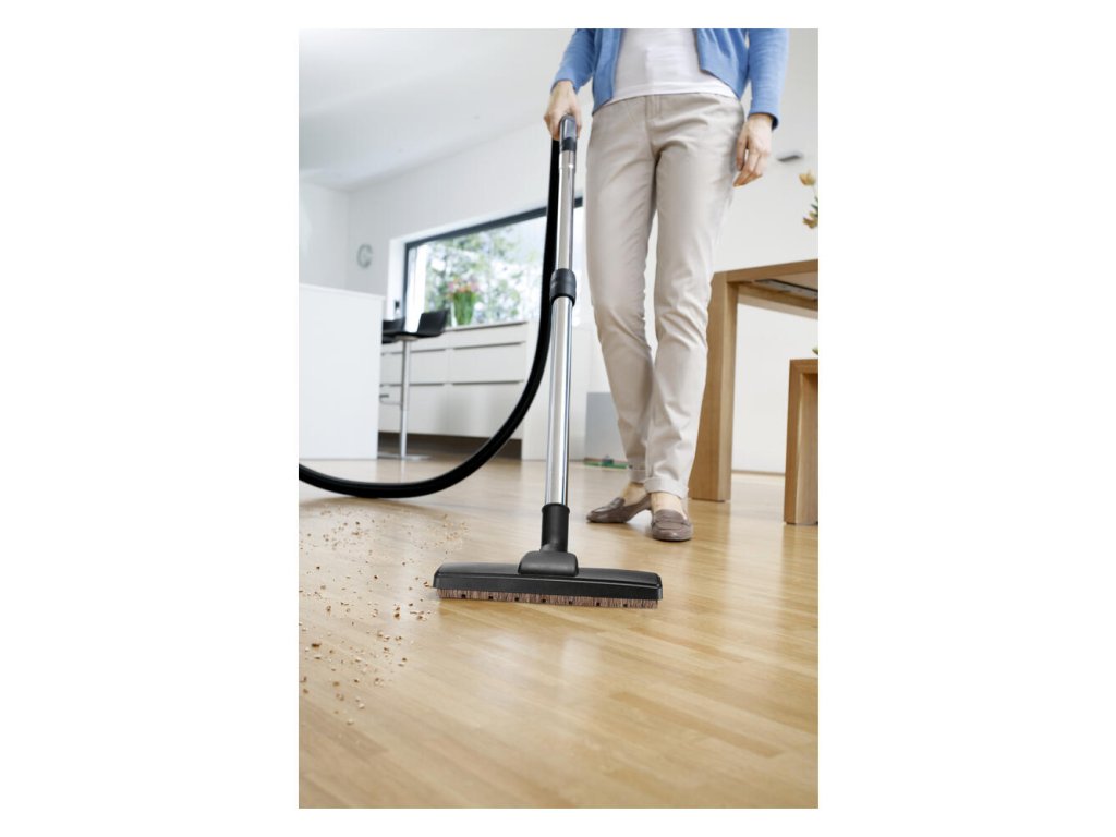 Hubica na parkety s mäkkými štetinami na šetrné čistenie tvrdých podláh, ako sú parkety, laminát korok, PVC, linoleum a dlažba.