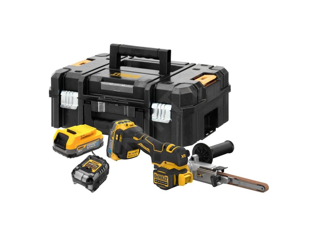 Pásová brúska DEWALT DCM200E2T 2x1,7Ah kufor pre náročné brúsenie v úzkych miestach