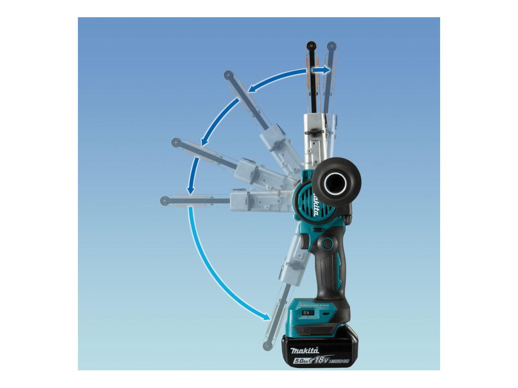 Tento aku pilník disponuje BL motorom, ktorý zaručuje konštantný výkon aj pri zaťažení. Bezpečnosť zvyšuje zámok proti náhodnému zapnutiu, ktorý bráni spusteniu stroja, ak je rameno sklopené o viac o 90°. Presná regulácia rýchlosti pásu pomocou gombíka umožňuje prispôsobiť brúsenie citlivosti materiálu od dreva až po tvrdú oceľ.Hlavné vlastnosti a výhody pilník DBS180Z