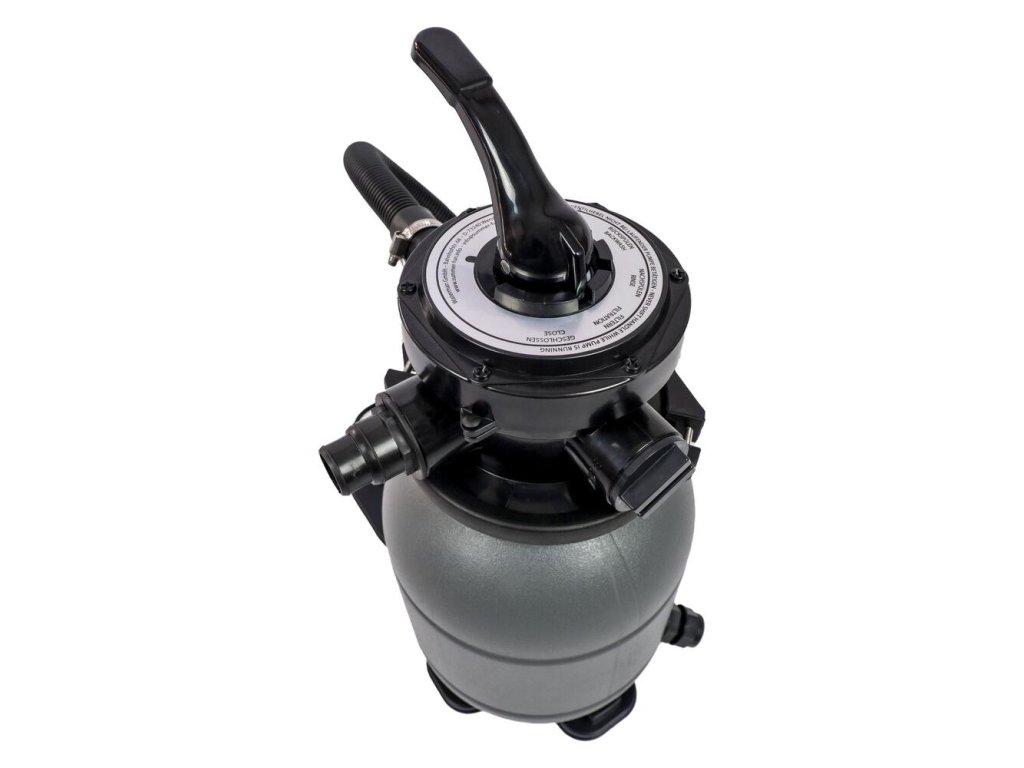 Filtrácia má viaccestnú hlavicu (ventil) a praktický vypúšťací ventil.
