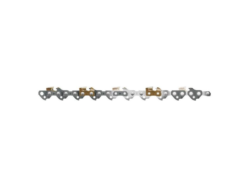 Prvá a jediná nízkoprofilová reťaz s tvrdokovovou reznou časťou na trhu. Vypuklý spojovací článok pred každým rezným zubom zabezpečuje lepší plynulejší chod reťaze a redukuje spätné vrhy. Vďaka tvrdokovovej reznej časti zostanú rezné zuby až štyrikrát dlhšie ostré bez naostrenia, oproti bežnej reťazi. Obzvlášť vhodné pri extrémnom použití, pri rezaní podvalov, šalovania, znečisteného dreva, pórobetónu alebo sadrokartónu. Šípky na spojovacích článkoch ukazujú smer pohybu. Ukosy na päte rezného zuba umožňujú spätné tlmiace sklápanie rezného zuba a tým znižujú vibrácie oproti štandardnej pílovej reťazi až o 30%. Zlatá Premium farba rezných zubov vzniká špeciálnou úpravou. Životnosť reťaze Picco Duro 3 je štyrikrát dlhšia ako u bežnej reťaze.Doporučené pre píly STIHL: MS 180, 181, 201T, 211, 230, 231, 250, 251, MSE 140, 160, 180, 190, 200, 210, 230