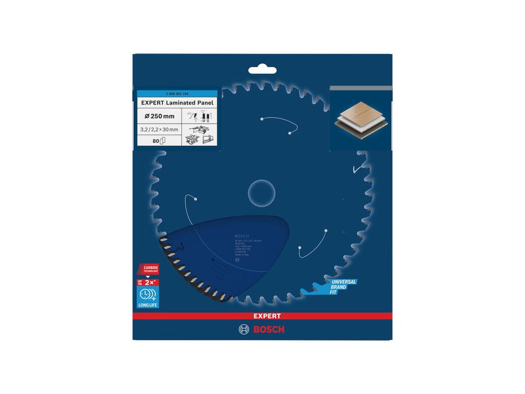 Rezanie laminovaného panelu s dlhou životnosťou! Pri rezaní laminovaných panelov pre kuchynské skrinky alebo pracovné dosky chcete mať istotu, že budú rezy čisté a presné, aby každý detail novej skrinky alebo pracovnej dosky vyzeral dokonale. EXPERT Laminated Panel sme navrhli na stolové píly, aby ste mali pílový kotúč, ktorý vám pomôže ľahko zvládnuť každú prácu. EXPERT Laminated Panel má naostrené jemné karbidové zuby vyrobené technológiou Bosch Carbide Technology. To znamená, že má dlhú životnosť a vykonáva čisté a presné rezy. Naniesli sme naň dodatočnú povrchovú úpravu, ktorá zabraňuje hromadeniu tepla a chráni ho pred koróziou.