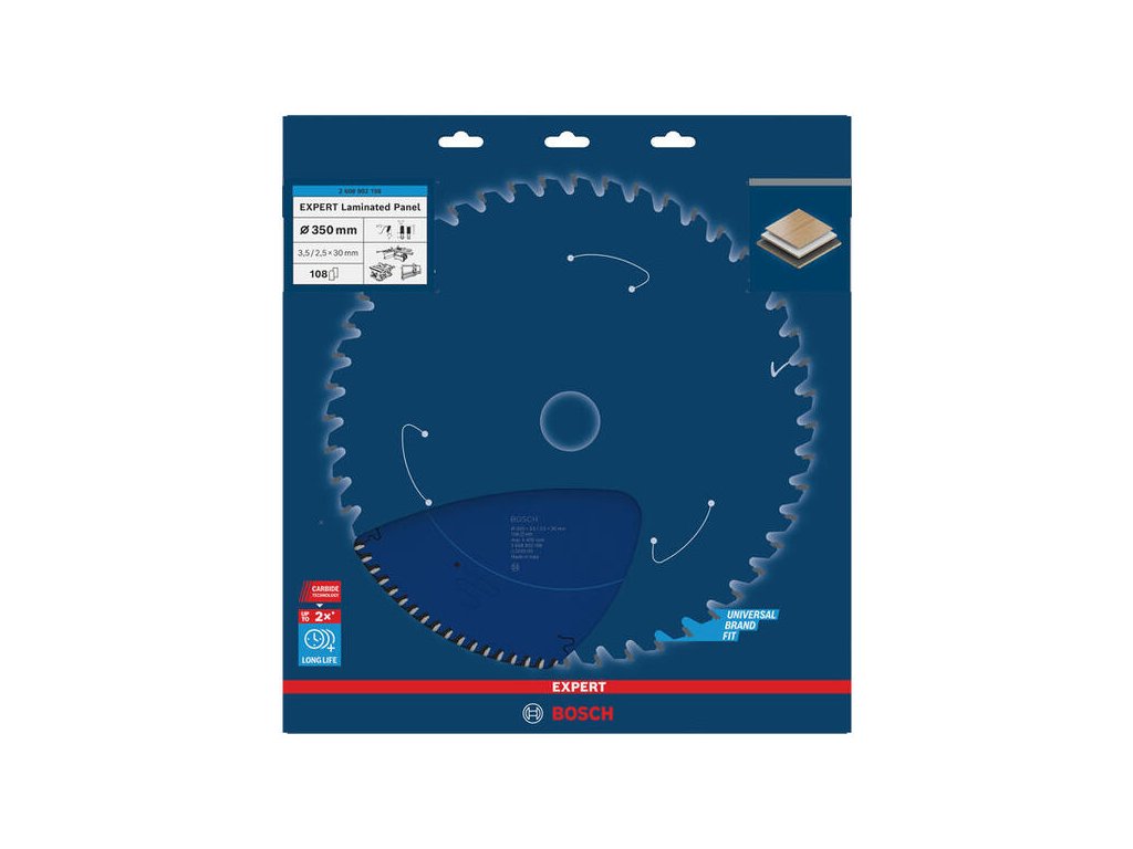 Rezanie laminovaného panelu s dlhou životnosťou! Pri rezaní laminovaných panelov pre kuchynské skrinky alebo pracovné dosky chcete mať istotu, že budú rezy čisté a presné, aby každý detail novej skrinky alebo pracovnej dosky vyzeral dokonale. EXPERT Laminated Panel sme navrhli na stolové píly, aby ste mali pílový kotúč, ktorý vám pomôže ľahko zvládnuť každú prácu. EXPERT Laminated Panel má naostrené jemné karbidové zuby vyrobené technológiou Bosch Carbide Technology. To znamená, že má dlhú životnosť a vykonáva čisté a presné rezy. Naniesli sme naň dodatočnú povrchovú úpravu, ktorá zabraňuje hromadeniu tepla a chráni ho pred koróziou.