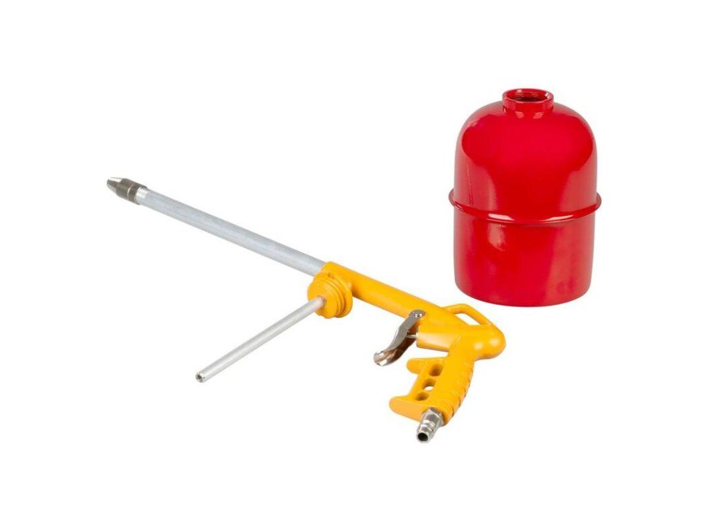 - rozprašovacia pištoľ so sacou nádobou ku kompresorom s 300 mm predĺžením a objemom nádoby 900 cc je vhodná na umývanie, údržbu, čistenie či antikorózne ošetrovanie