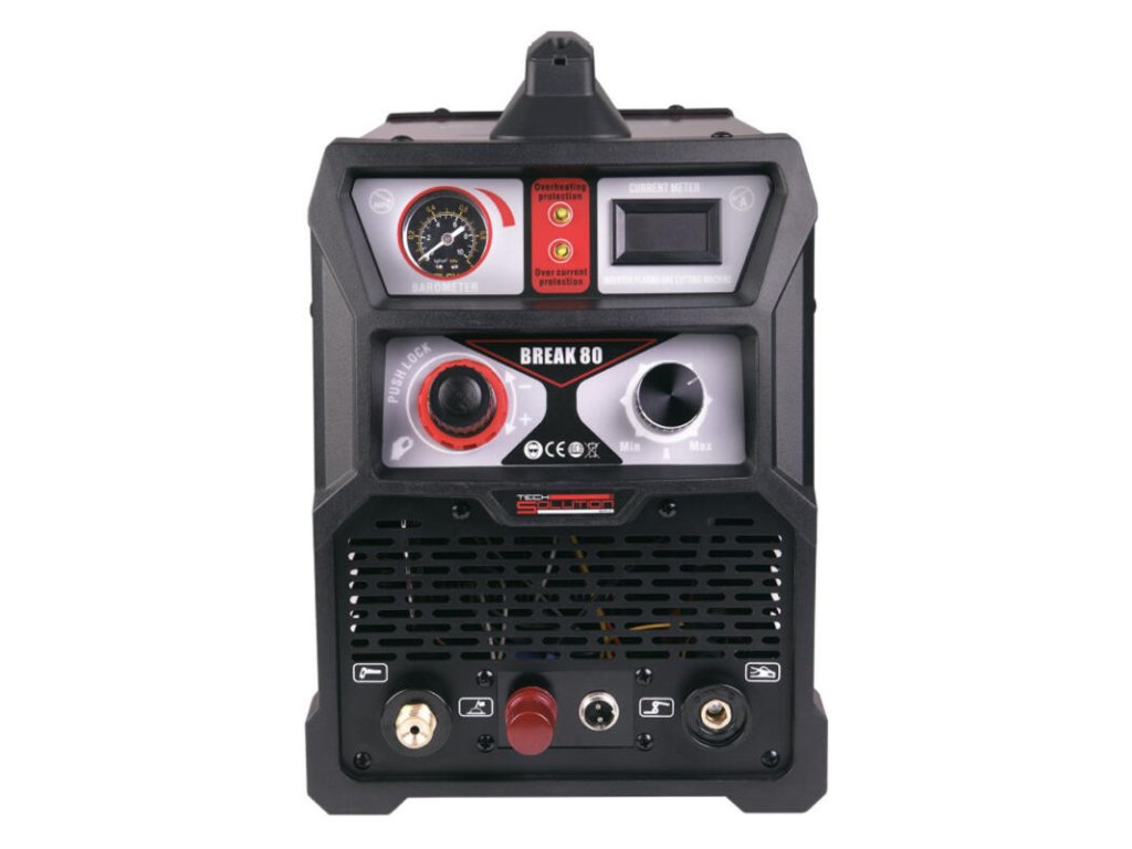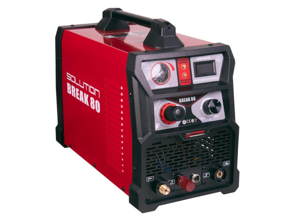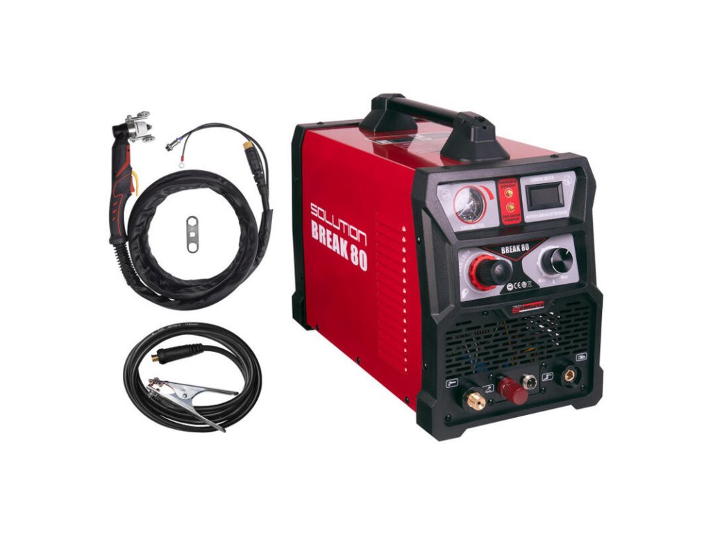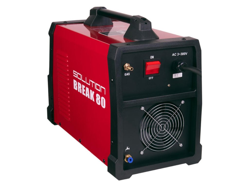 SOLUTION BREAK 80 je všestranne použiteľný výkonný invertorový plazmový rezací stroj s jednoduchým používaním a špeciálnym HF zapaľovaním oblúka (plazmový lúč je zapálený vo vnútri horáka a smerom von, do vzdialenosti 3 - 5 cm vytlačený prúdom vzduchu).