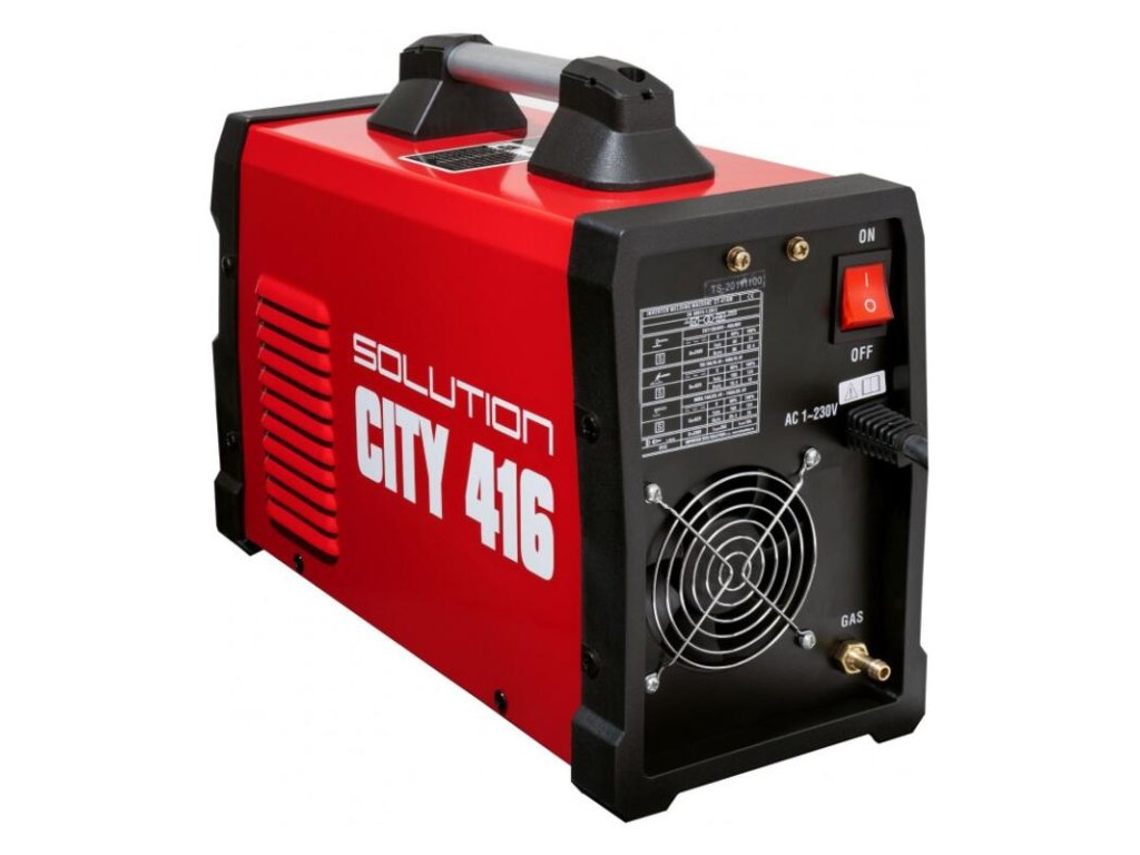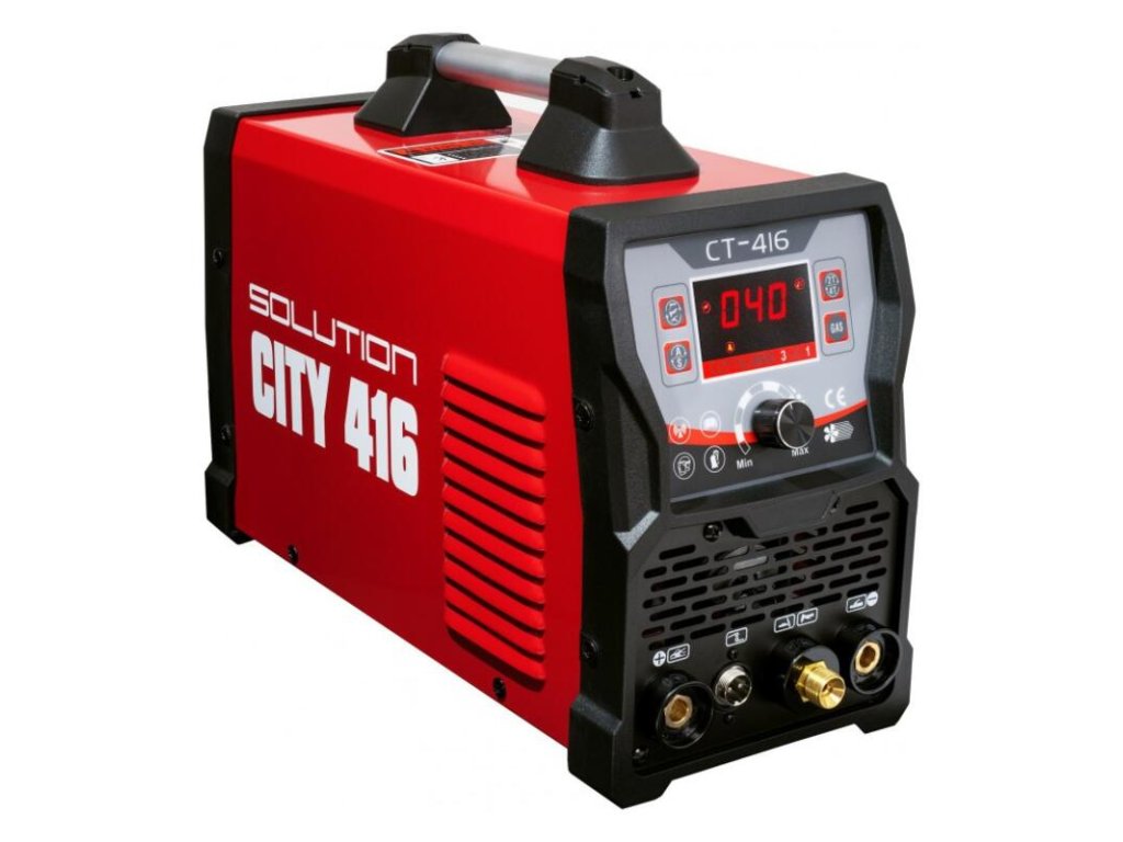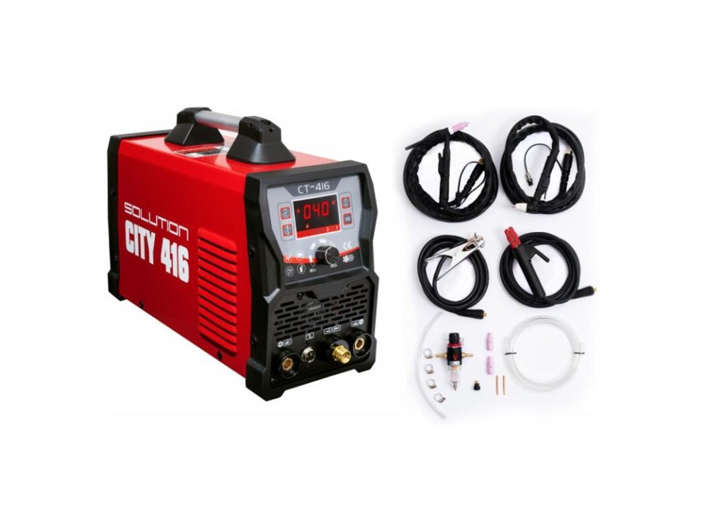 V cene stroja je rezací horák. Zváranie TIGom: modelom Solution CITY 416 je možné zvárať metódou TIG s HF zapaľovaním, wolfrámovou odtavujúcou elektródou (oceľ, nerez)