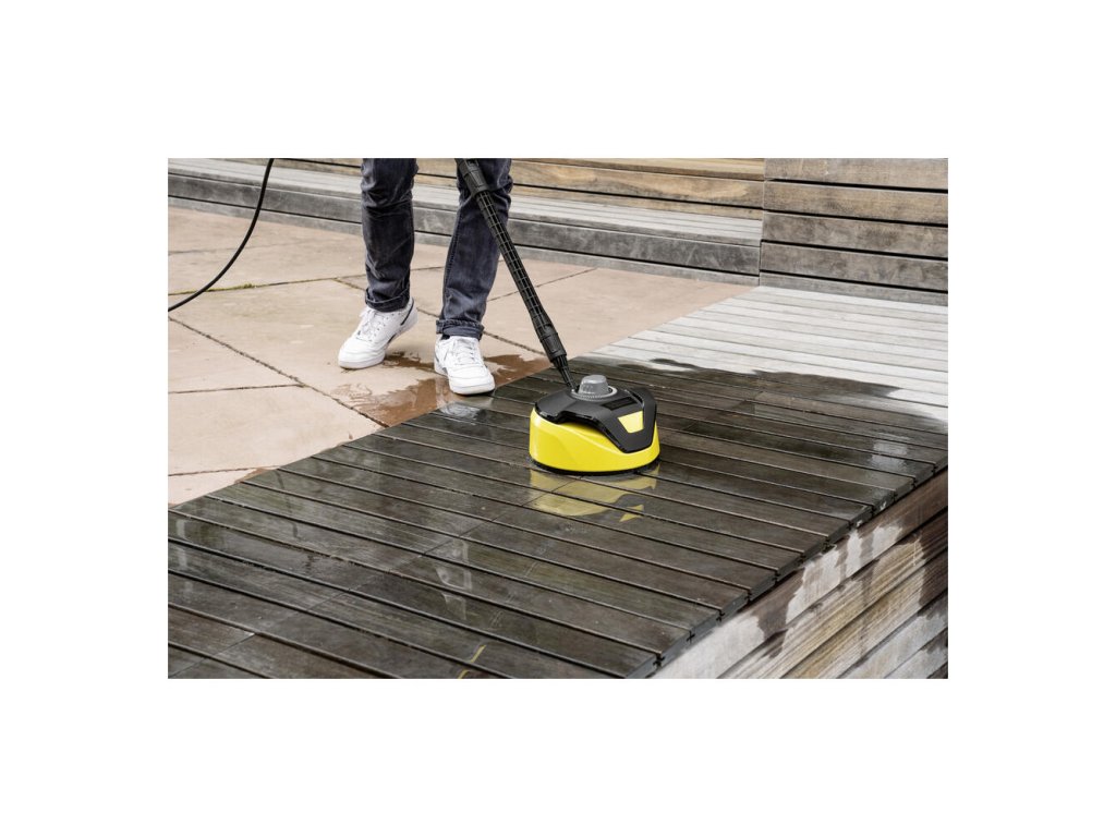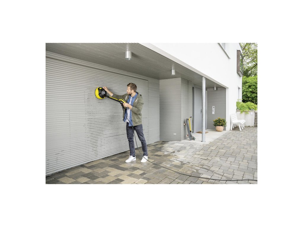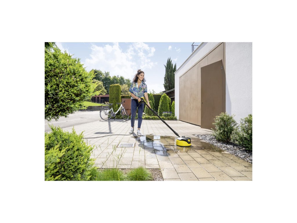 Otočné rameno Twin Jet plošného čističa umožňuje odstránenie nečistôt vo veľkom množstve, a tým rýchle a efektívne čistenie veľkých plôch v exteriéri. Obzvlášť praktické: čistič povrchov ponúka možnosť individuálneho nastavenia vzdialenosti medzi čistiacimi tryskamia čisteným povrchom. To znamená, že je možné vyčistiť tvrdé povrchy, ako je kameň a betón, ako aj citlivé povrchy, ako je drevo. V porovnaní s čistením pomocou pracovného nadstavca môže tento plošný čistič ušetriť asi polovicu času. Hlavica navyše spoľahlivo chráni používateľov a životné prostredie pred striekajúcou vodou, vďaka takzvanému vznášadlovému efektu je manévrovanie s ním detskou hrou. Pomocou ergonomickej rukoväte sa dajú optimálne vyčistiť aj zvislé plochy, ako sú garážové dvere, fasáda, brány či ploty. Vhodné pre vysokotlakové čističe triedy K 2 až K 7.