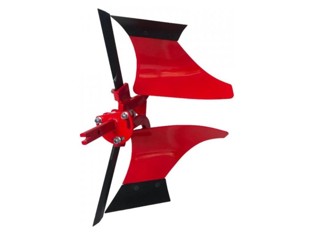 Pluhy sú naproti sebe v 180° uhle, jeden z pluhov tak nepretŕča do strany a tým šetrí miesto napr. pri oraní tesne pri plote. Obracák má úchyt s rozmerom 40x20mm, viete ho používať s naším nastavovacím telesom, ktoré umožňuje presne nastaviť sklon pluhu pre čo najľahšiu prácu.