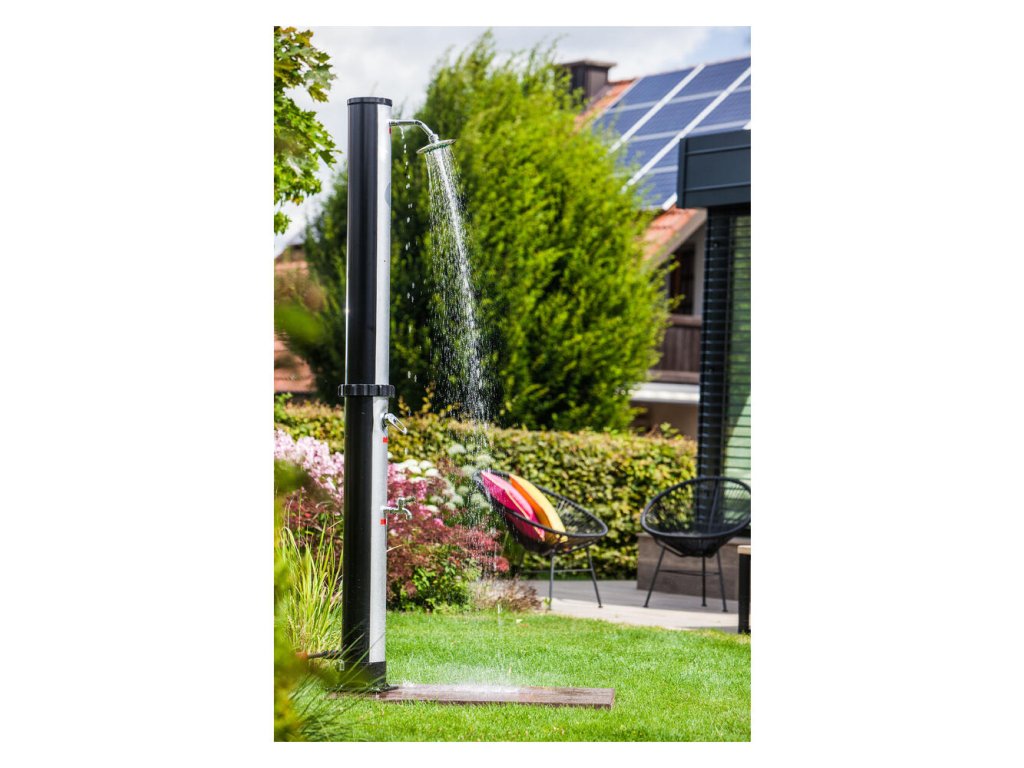 Stabilný stojan pre každú solárnu alebo záhradnú sprchu. Môže slúžiť buď ako sprchový rošt, ktorý odvádza vodu po sprchovaní mimo sprchovacieho priestoru, alebo priamo ako pevný a stabilný podstavec pre solárnu sprchu, na ktorom je sprcha namontovaná. Tým sa eliminuje potreba kotvenia sprchy do zeme. Vďaka svojej veľkosti slúži rošt ako samonosný rošt - pripevnená sprcha na ňom bezpečne drží a základňu už nie je potrebné kotviť do zeme. Sprchu pripevnenú k podstavcu možno ľahko premiestniť na iné miesto v záhrade.