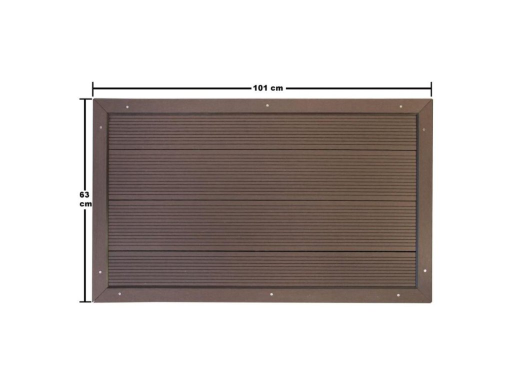 Podstavec má rozmery XL 101 x 63 cm a váži 18 kg. Je vyrobený z kvalitného WPC imitujúceho drevené dosky a je odolný voči poveternostným vplyvom. Je protišmykový, odtok vody zabezpečujú drážky v rošte. Podstavec má na spodnej časti gumové nožičky pre väčšiu bezpečnosť.