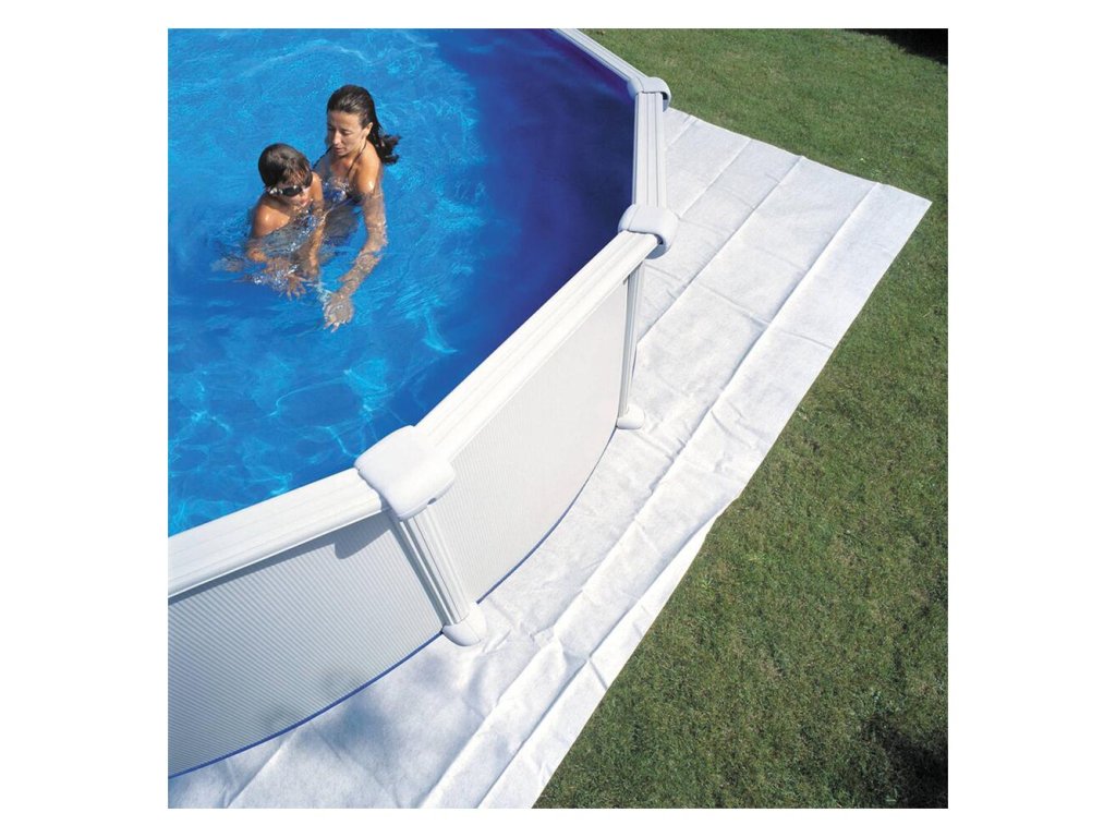 Geotextilná podložka nielenže chráni dno bazéna pred plesňami, trhlinami alebo porastom trávy, ale tiež vám zabezpečí väčší komfort pri prechádzaní bazénom. Je vyrobená z kvalitnej geotextílie a kladie sa na rovnú preosiatu zeminu alebo piesok. Vďaka svojim rozmerom je vhodná pre bazény s rozmermi 7,3 x 3,7 m.