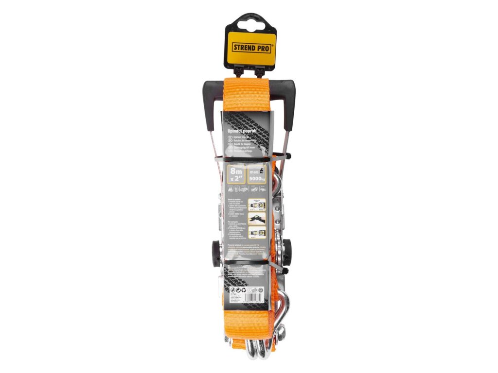 Upínací popruh Strend Pro má široké spektrum využitia. Slúži na zviazanie tovaru, zavetrovanie konštrukcií, na kotvenie stanov, koncertných stageov a podobne. Jeho dĺžka je 6 m, šírka je 50 mm a maximálna nosnosť je 5 000 kg.Technické parametre:
