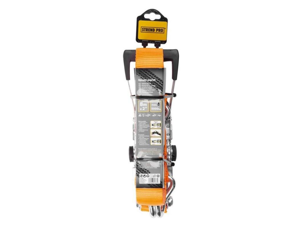 Upínací popruh Strend Pro má široké spektrum využitia. Slúži na zviazanie tovaru, zavetrovanie konštrukcií, na kotvenie stanov, koncertných stage-ov a podobne. Jeho dĺžka je 8 m, šírka popruhu je 50 mm a maximálna nosnosť je 5 000 kg.Technické parametre: