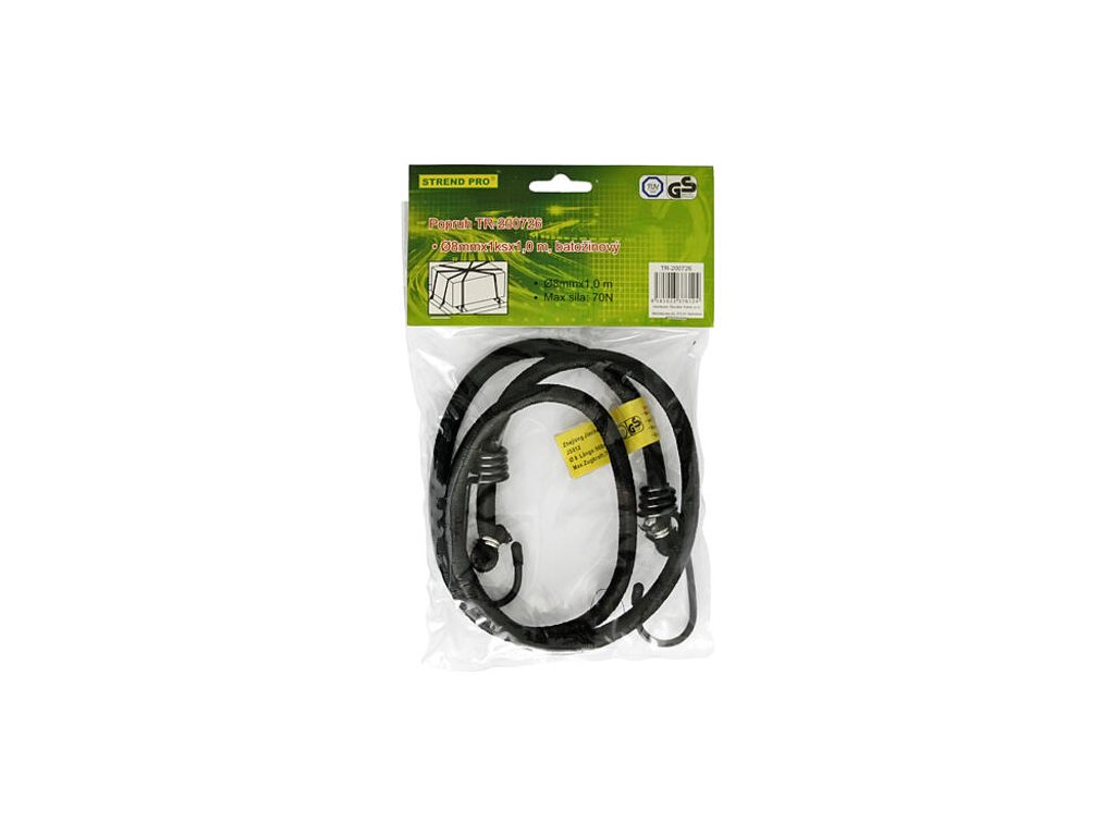 Upínacia guma Strend Pro s oceľovými háčikmi slúži na fixáciu predmetov. Jej dĺžka je 100 cm a priemer je 8 mm.Technické parametre: