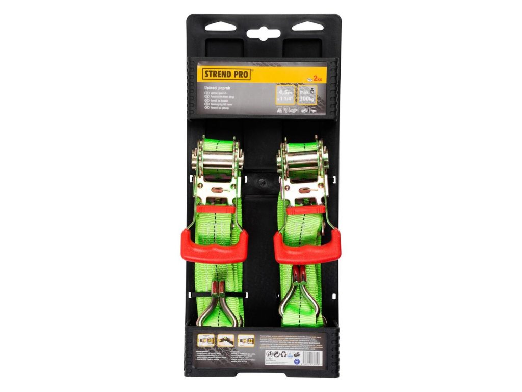 Upínací popruh Strend Pro má široké spektrum využitia. Slúži na zviazanie tovaru, zavetrovanie konštrukcií, na kotvenie stanov, koncertných stage-ov a podobne. Jeho dĺžka je 4,5 m a maximálna nosnosť je 400 kg. Balenie obsahuje 2 ks.Technické parametre: