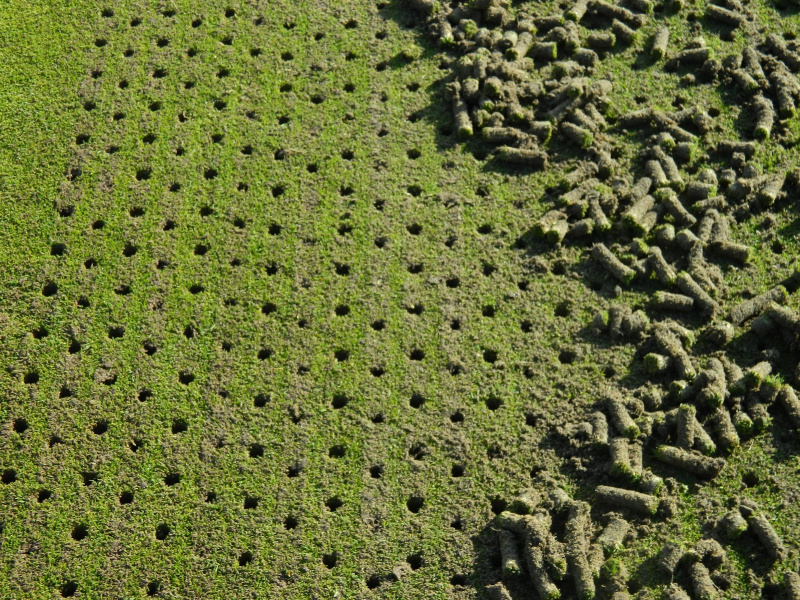 - Pohnojenie: Aplikácia hnojiva ihneď po aerifikácii je veľmi efektívna, pretože živiny sa dostanú priamo ku koreňom.