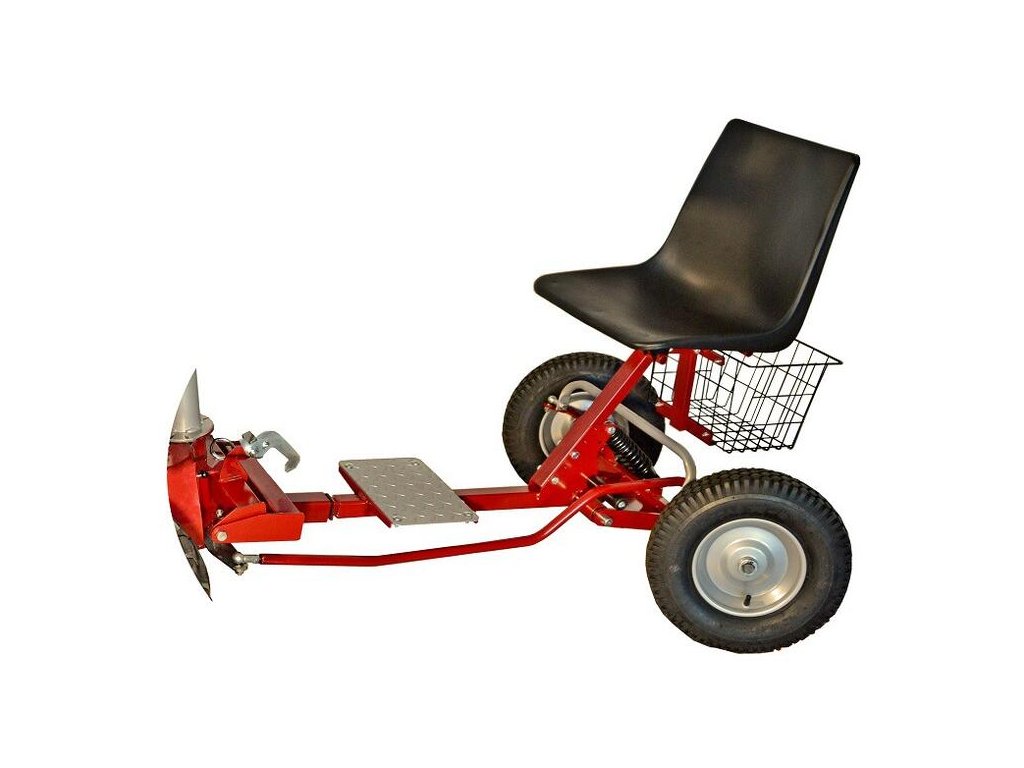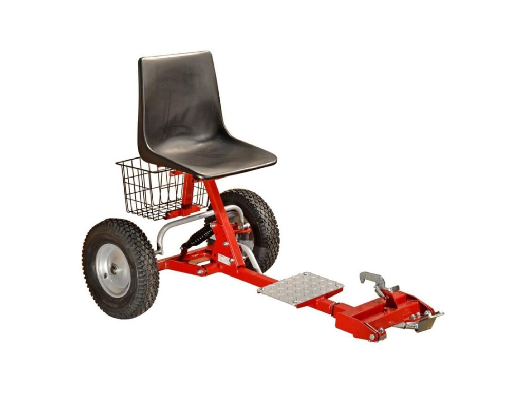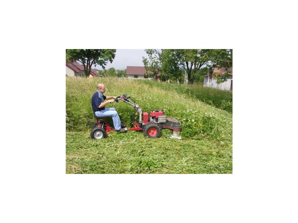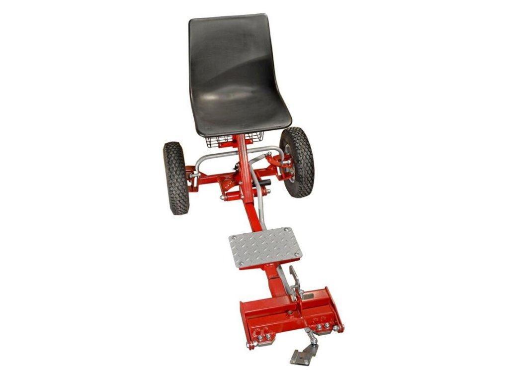 Profesionálna odpružená sedačka s riadenými kolesami, ktorá vytvára v spojení s pohonnou jednotkou štvorkolesový traktor vhodný aj do náročnejšieho terénu. Kolesá sedačky sa ovládajú riadidlami pohonnej jednotky. Tým sa dosiahne to, že nemusíte zatáčať ťažkou pohonnou jednotkou s pracovným nástavcom, ako u iných strojov, ale celou zostavou zatáčate ľahko natočením kolies sedačky. Polomer zatáčania je pritom veľmi malý a preto je celá zostava veľmi obratná a hodí sa aj do záhrad a sadov, kde je potrebné obchádzať kmene stromov. Tým, že za kosačkou nemusíte ísť, tak môžete kosiť aj tak, kde by ste sa kvôli nízkym vetvám nedostali.