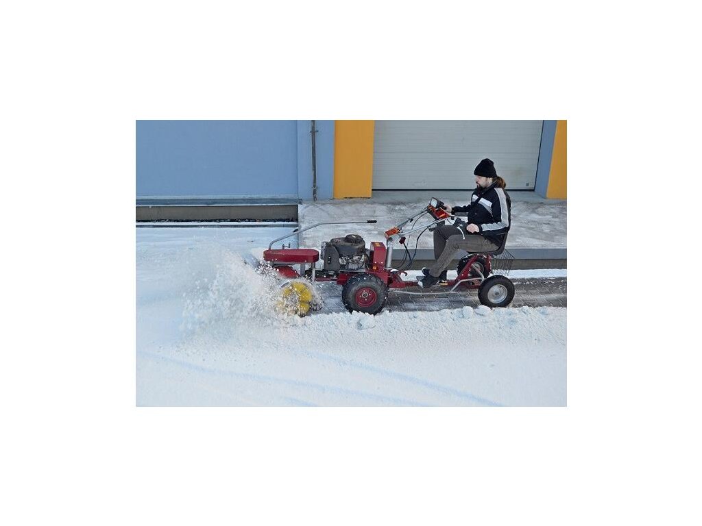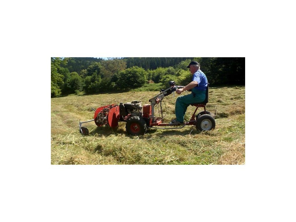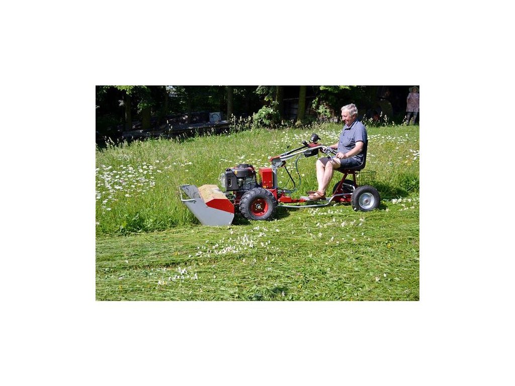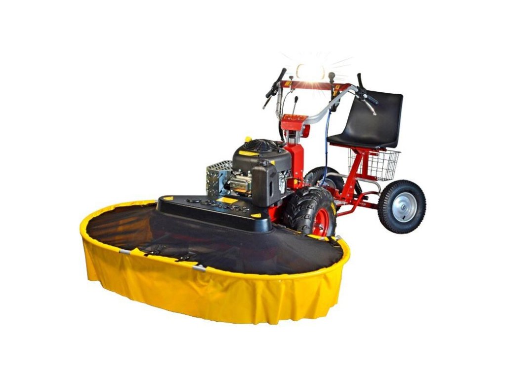 Profesionálna odpružená sedačka s riadenými kolesami, ktorá vytvára v spojení s pohonnou jednotkou štvorkolesový traktor vhodný aj do náročnejšieho terénu. Kolesá sedačky sa ovládajú riadidlami pohonnej jednotky. Tým sa dosiahne to, že nemusíte zatáčať ťažkou pohonnou jednotkou s pracovným nástavcom, ako u iných strojov, ale celou zostavou zatáčate ľahko natočením kolies sedačky. Polomer zatáčania je pritom veľmi malý a preto je celá zostava veľmi obratná a hodí sa aj do záhrad a sadov, kde je potrebné obchádzať kmene stromov. Tým, že za kosačkou nemusíte ísť, tak môžete kosiť aj tak, kde by ste sa kvôli nízkym vetvám nedostali.