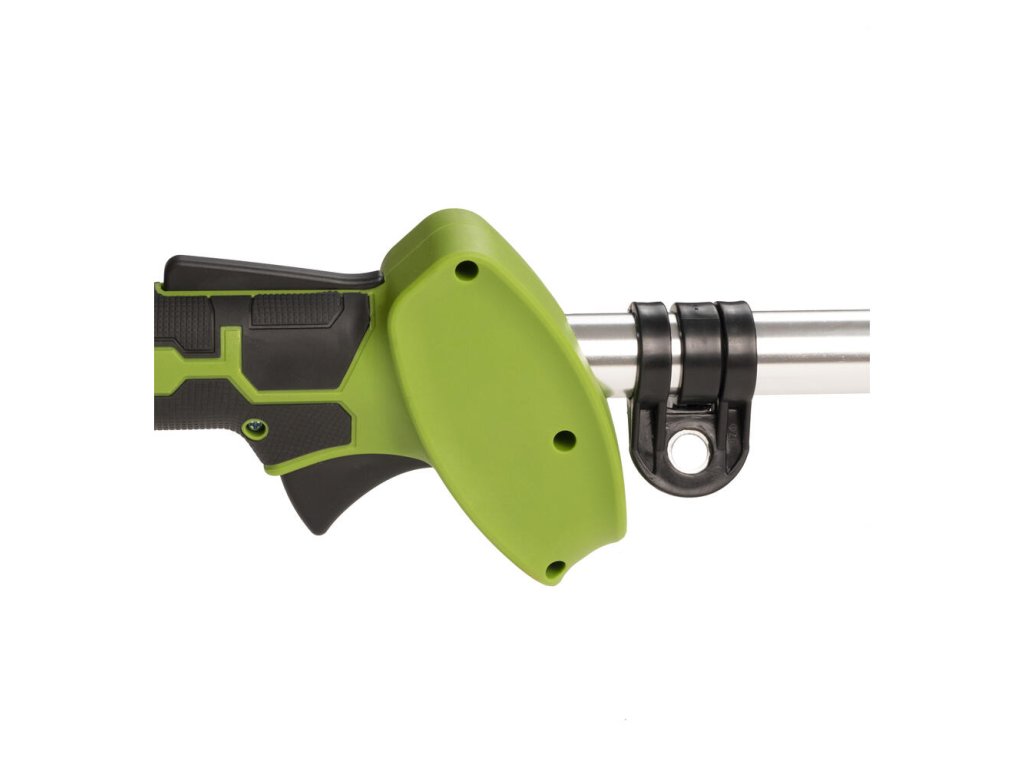 - Ľahká váha a regulácia otáčok robia stroj ideálnym na prácu okolo kríkov, plotov alebo v rohoch záhrady.