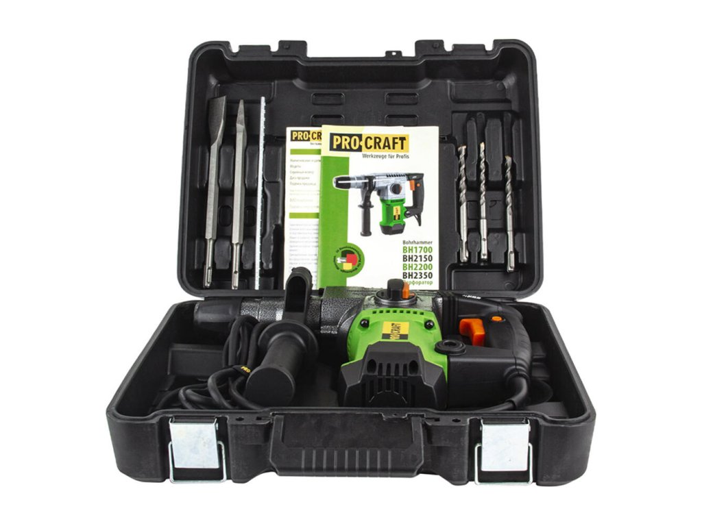 Kombinované vŕtacie a sekacie kladivo SDS Plus je vysoko spoľahlivé a výkonné náradie, ktoré možno použiť na širokú škálu stavebných prác. S vŕtačkou Procraft BH1700 pracuje v troch režimoch - vŕtanie, vŕtanie s príklepom a vŕtanie s príklepom. Výkon vŕtacieho kladiva je 1 700 W a otáčky sú v rozsahu 0 - 820 ot/min. Model je vybavený reguláciou otáčok, skľučovadlom SDS-Plus, spätným chodom a antivibračným systémom. Nástroj je kompaktný, praktický a ľahký. Mechanizmus je uzavretý vo vysokopevnostnom kovovom puzdre. Vybavený je antivibračným systémom, ktorý pomáha predĺžiť životnosť stroja.