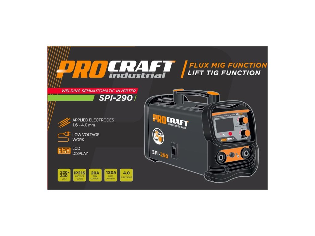 ProCraft Kombinovaná invertorová zváračka SPI-290, zváracia kukla SHP100-90