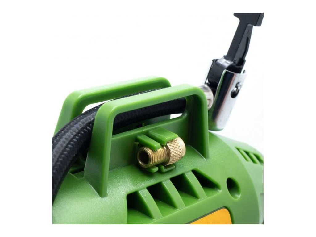 Prídavný kompresor je určený na kontrolu a doplnenie potrebného tlaku v pneumatikách. Súčasťou sú adaptéry na hustenie pneumatík, ktoré slúžia na nafukovanie športových lôpt, nafukovacích predmetov, matracov a hračiek. Displej kompresora umožňuje zvoliť požadované jednotky a cieľový tlak, pri ktorom sa kompresor automaticky vypne. Spínač kompresora je vybavený bezpečnostným spínačom proti samovoľnému spusteniu a blokovaním spínača v zapnutej polohe.