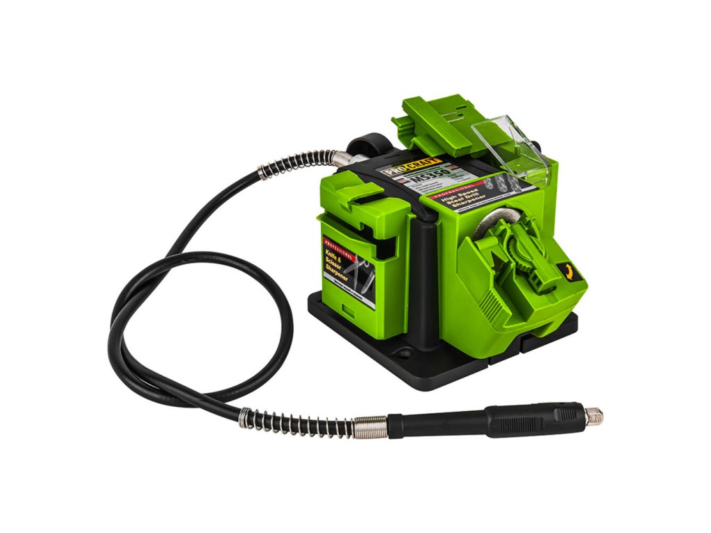 Viacúčelová brúska Procraft MS350 je určená na ostrenie nožov alebo nožníc, tvarovanie a ostrenie hrotov špirálových vrtákov, hobľovacích nožov, brúsnych nožov a dlát. Diamantový brúsny kotúč a robustný 65 W motor umožňujú kvalitné spracovanie.