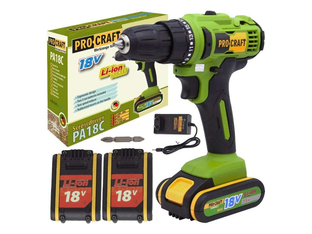 ProCraft PA18C Akumulátorový vŕtací skrutkovač (2x1,5 Ah)