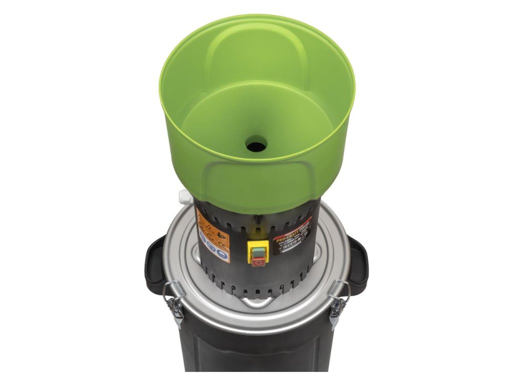 Zásobník s objemom 25 l umožňuje nepretržité spracovanie väčšieho množstva krmiva. Plniaca násypka s objemom 11 l uľahčuje dávkovanie.