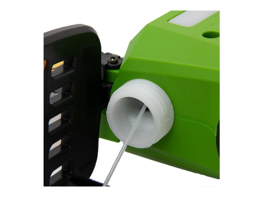 Jednoruká reťazová píla je vďaka svojim kompaktným rozmerom užitočným nástrojom na prerezávanie stromov a kríkov v stiesnených priestoroch. Jej prevádzka je v porovnaní s väčšími strojmi tichá a vďaka bezkartáčovému motoru je dostatočne výkonná. Vybavená je bezpečnostným krytom reťaze píly. Vďaka veľmi ľahkému prevedeniu s ňou budete môcť pohodlne pracovať tak dlho, ako len bude potrebné. Náhradnú reťaz RPKA20 je možné zakúpiť.