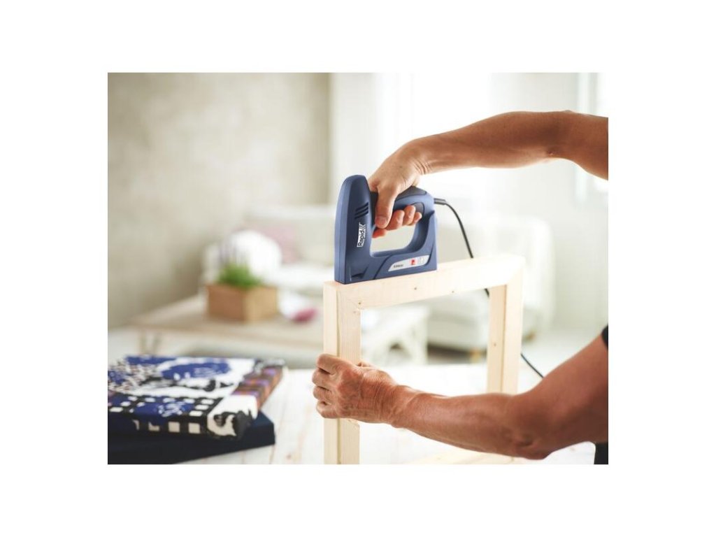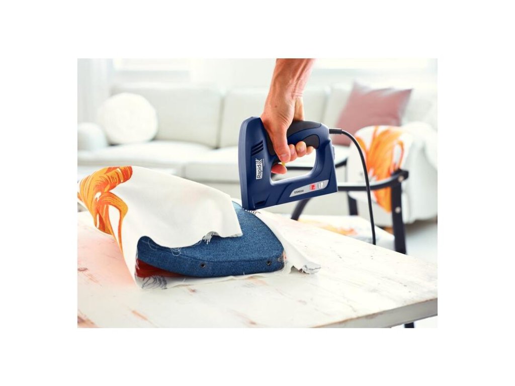 Sponkovačka RAPID ESN530 je ľahko ovládateľná, výkonná, elektrická sponkovacia pištoľ pre náročnejšie projekty v dome, je ideálna pre čalúnenie nábytku, textilné práce alebo upevňovanie kobercov, kože alebo tenkých drevených materiálov. Plochá predná strana tohto modelu taktiež umožňuje ľahký prístup do rohov, kútov alebo tesných priestorov a zvyšuje tak efektivitu a užívateľský komfort. Celooceľový dvojitý zásobník a kvalitná konštrukcia zaisťuje predĺženú prevádzkovú životnosť.