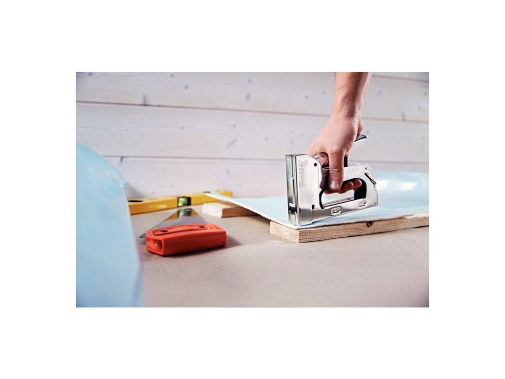 - Je vhodná na množstvo prác, vrátane upevňovania tenkých dosiek alebo sololitu, alebo materiálov, ako sú izolácie, izolácie proti vlhkosti, plastové obalové fólie, lepenka, papier alebo iné diely, ktoré vyžadujú vysokú kvalitu upevnenia.