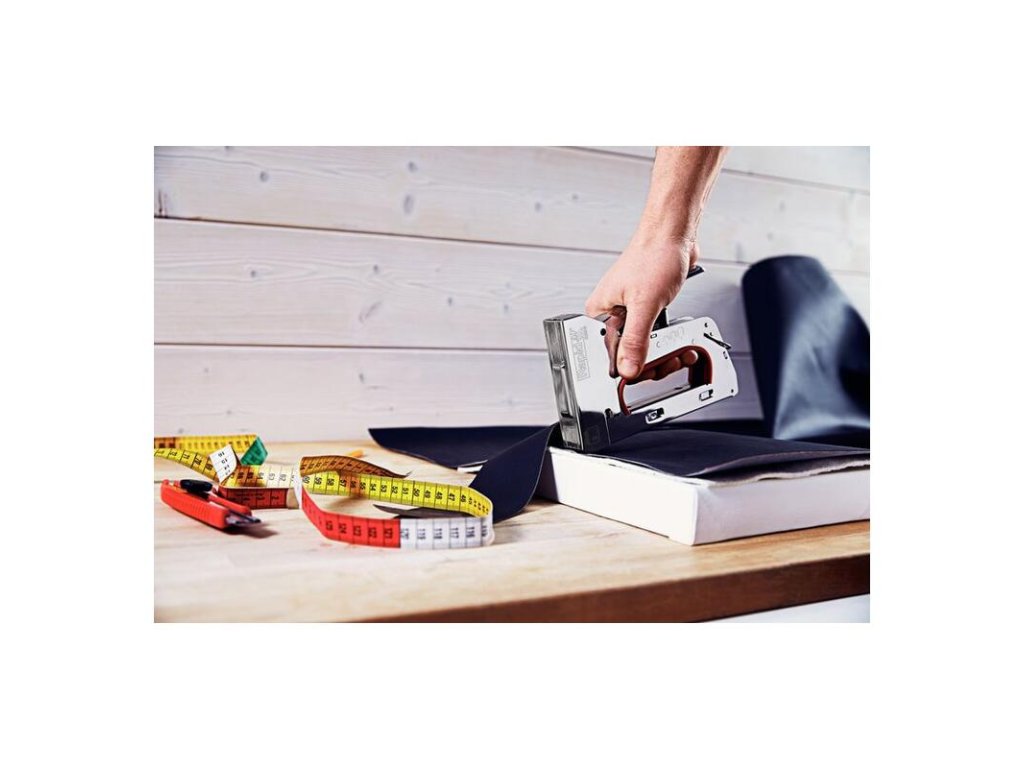 Výkonná, nekompromisná sponkovačka navrhnutá pre rozmanité a náročné profesionálne aplikácie a presnú prácu. R353E, obzvlášť oceňovaná pre svoju predĺženú prevádzkovú životnosť, je vybavená novou, patentovanou spúšťou s 3 stupňovým nastavením sily. Táto funkcia uľahčuje jej obsluhu o 40%. Vhodná pre množstvo náročných prác, vrátane upevňovania ťažkých textílií, kobercov, kože, plátna a iných citlivejších textílií.
