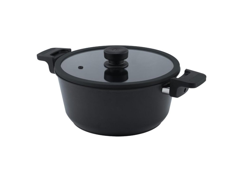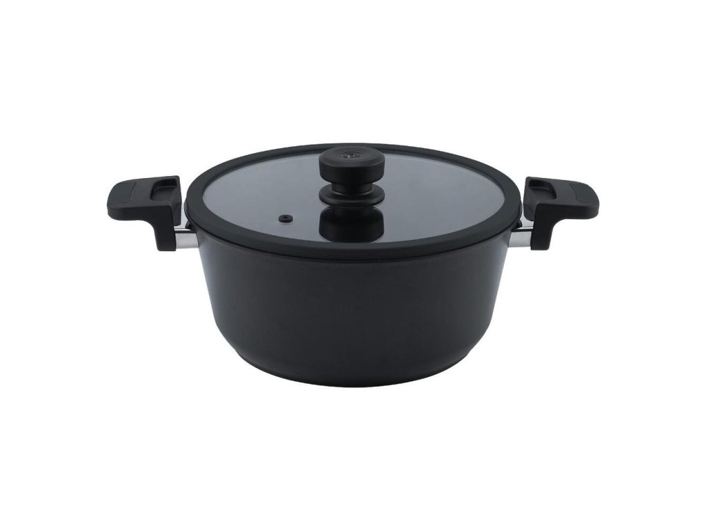 umožňujú bezpečnú manipuláciu a tiež možnosť pečenia v rúre. Úchyty sú v čiernej farbe. Súčasťou balenia sú 3 rôzne veka s