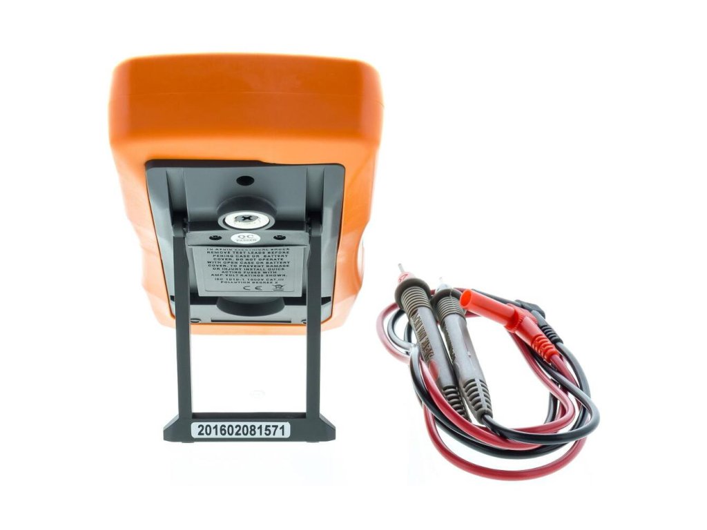 - Multimeter má na zadnej strane magnet, vďaka ktorému sa multimeter môže pripevniť napríklad na kovovú rozvodnú skriňu.