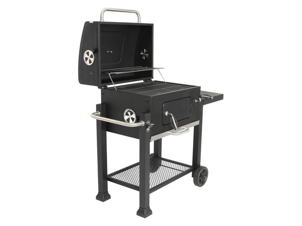 Vzdialenosť vane na drevené uhlie od grilovaného pokrmu sa ľahko reguluje pomocou spoľahlivého otočného ovládača