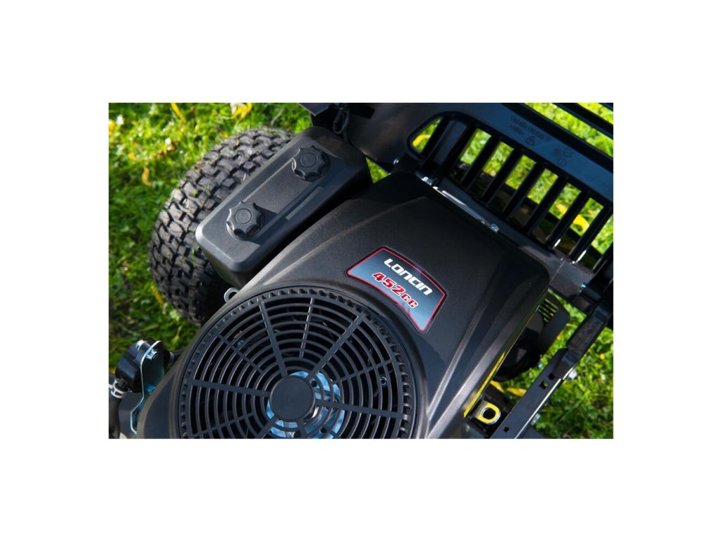 - Prémiový motor Loncin V-Twin: Dvojvalec s tlakovým mazaním je ideálny aj do svahovitejšieho terénu.