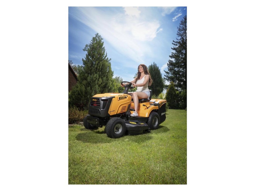 Jazda s týmto traktorom je radosť. Žiadne radenie, len plynulý pohyb vpred a vzad pomocou pedálov. Kosenie pri cúvaní šetrí čas pri manévrovaní v rohoch záhrady. Veľký kôš so zvukovou signalizáciou vám dá vedieť, kedy je čas ho vysypať, takže sa nemusíte báť upchatého tunela. Robustná konštrukcia zaručuje, že tento stroj nie je len "hračka na jednu sezónu".