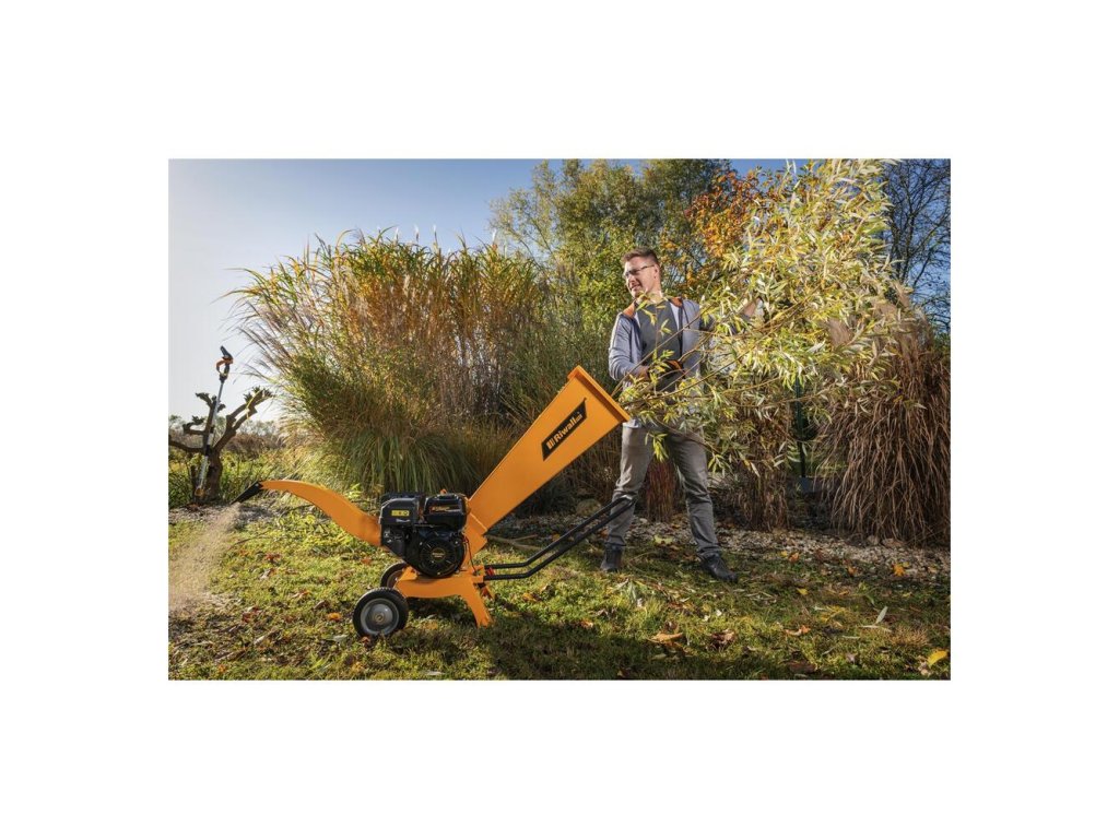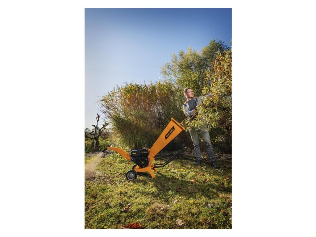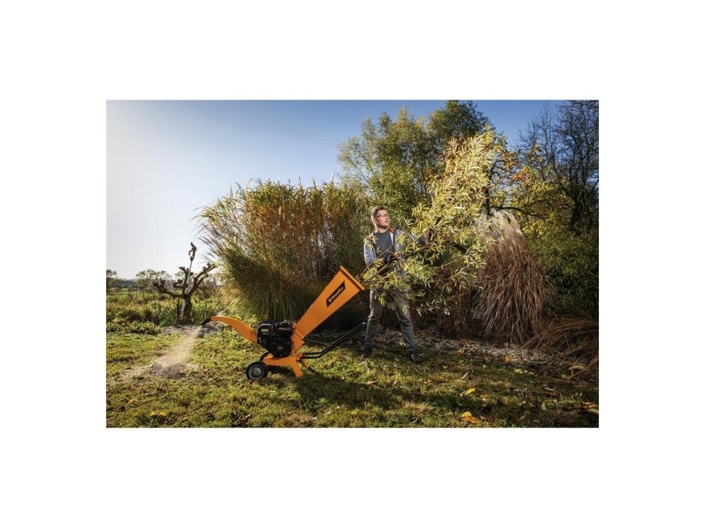 premyslená konštrukcia - vďaka absencii často problematického remeňového prevodu a umiestneniu motora priamo pod vstupným komínom je stroj oveľa kompaktnejší a skladnejší bez toho, aby sa znížil jeho výkon. Motor s objemom 212 cm3 a pokročilý drviaci systém s veľkým a ťažkým rotačným valcom umožňujú drviť konáre s priemerom až 45 mm