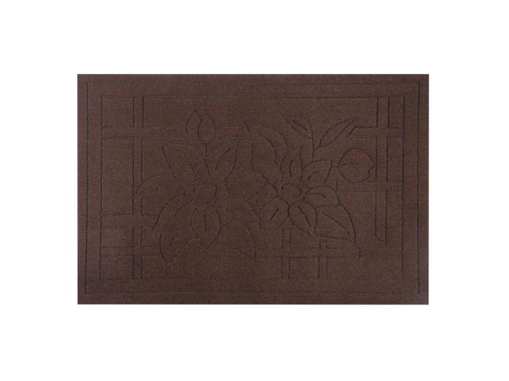 Rohožka MagicHome na čistenie obuvi pri vchodových dverách. Má jemne drsný povrch, vďaka čomu dokáže očistiť obuv bez väčšej námahy. Pekný motív s kvetom v hnedej farbe. Použitie: exteriér. Rozmery: 40x60 cm.