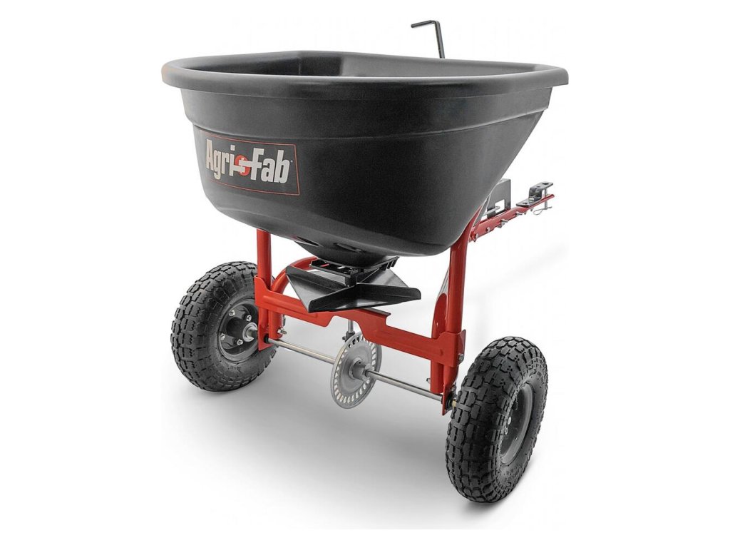 - Rozmetadlo hnojív s nosnosťou 50 kg a šírlou záberu do 300 cm za traktorové kosačky na posypovú soľ pre zimnú údržbu ako aj na rozhadzovanie hnojiva na trávnik.