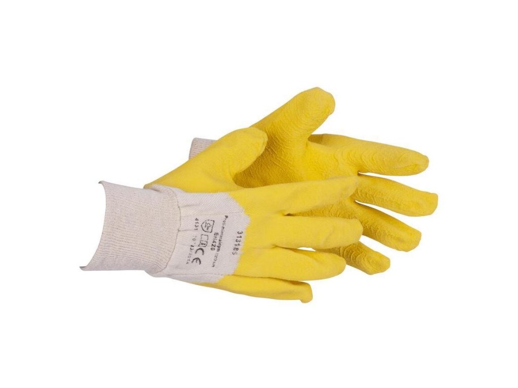 - bavlnené rukavice s pružným nápletom na zápästí- polomáčané v žltom prírodnom latexe
