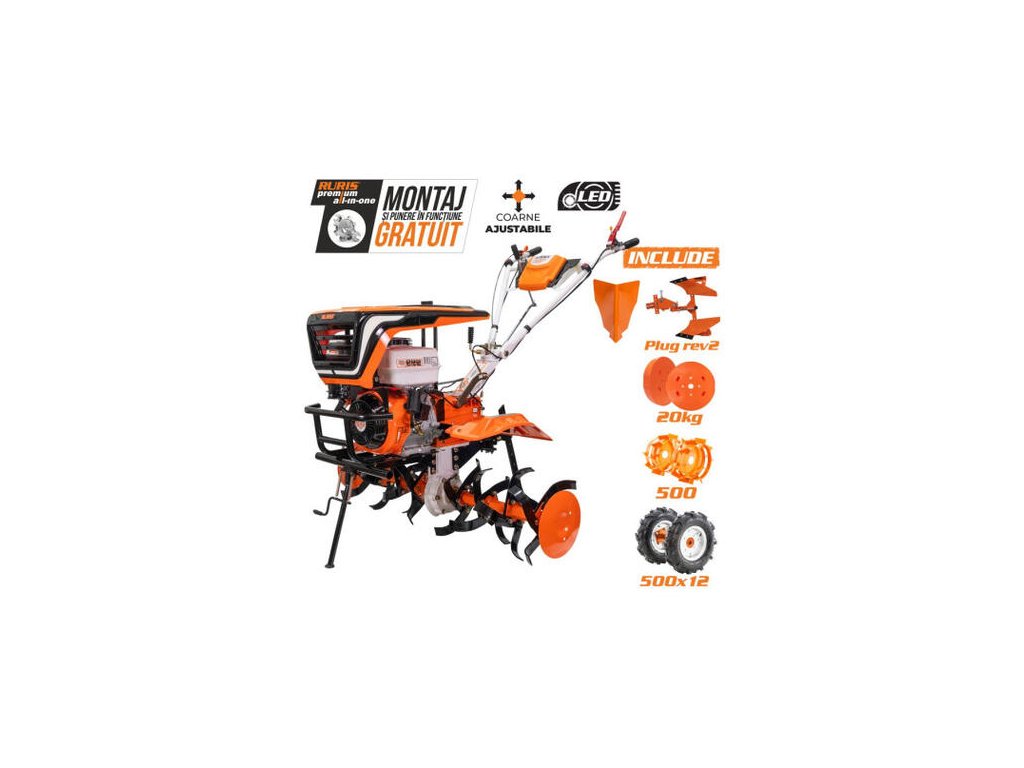 Je vybavený motorom s výkonom 15 HP a objemom valcov 420 ccm, dokáže bez problémov obrábať akýkoľvek typ pôdy bez ohľadu na jej tvrdosť, pričom dosahuje hĺbky až 360 mm s účinnosťou nad 1500 m2. /h