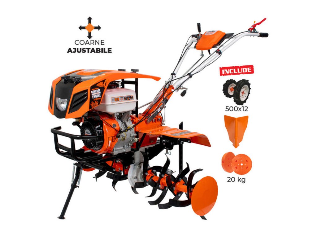 - Profesionálny kultivátor RURIS 915K je vybavený 15 HP General Engine a kultivačnými nožmi s nastaviteľnou šírkou medzi 750 mm a 1 100 mm.