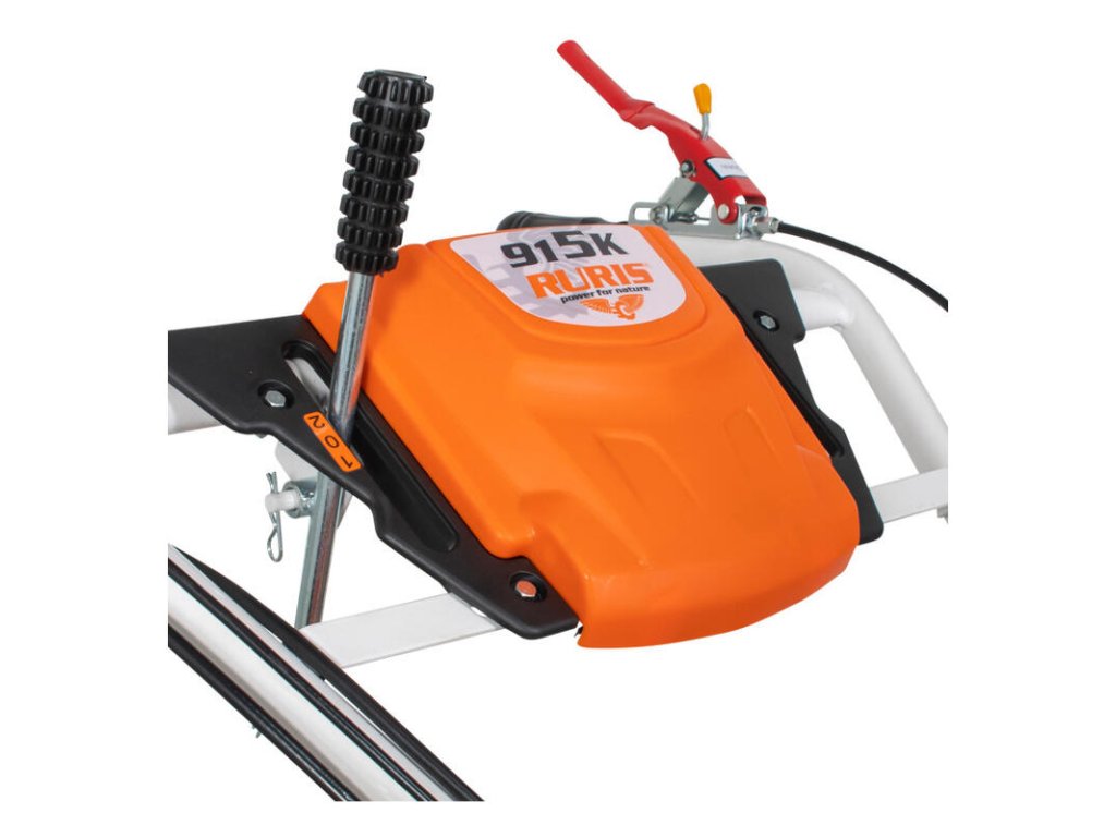 - RURIS 915K, hoci váži 146 kg,dá sa ľahšie ovládať vďaka nahor nastaviteľným kovovým madlám a gumeným rukovätiam určeným na tlmenie vibrácií generovaných motorom.