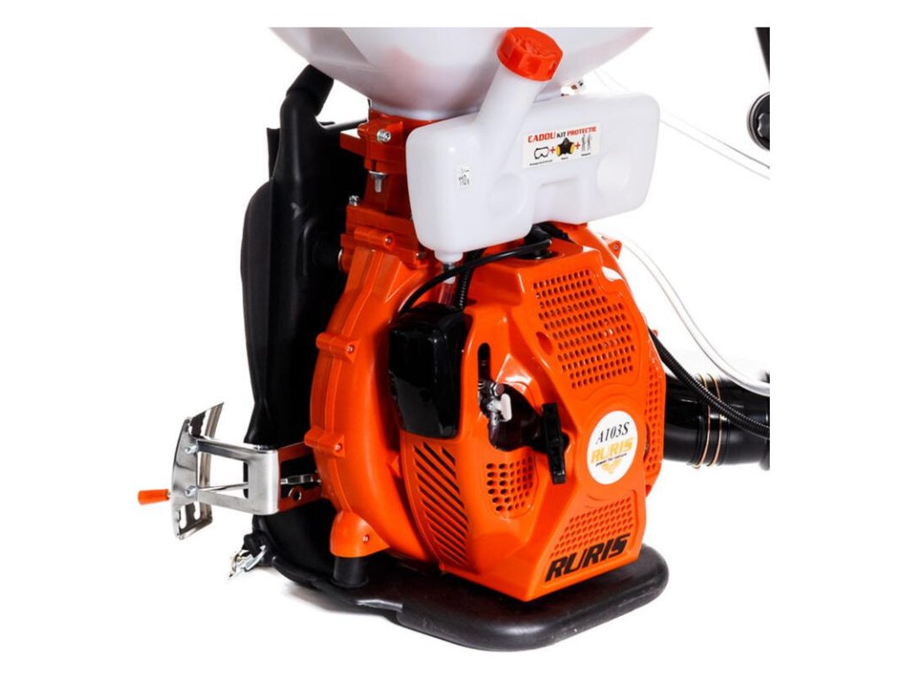Ďalšou dôležitou výhodou je vybavenie rosiča RURIS A103S systémom rozprašovania chemických prípravkov alebo fungicídov, a to ako pevných granúl, tak aj prachov.