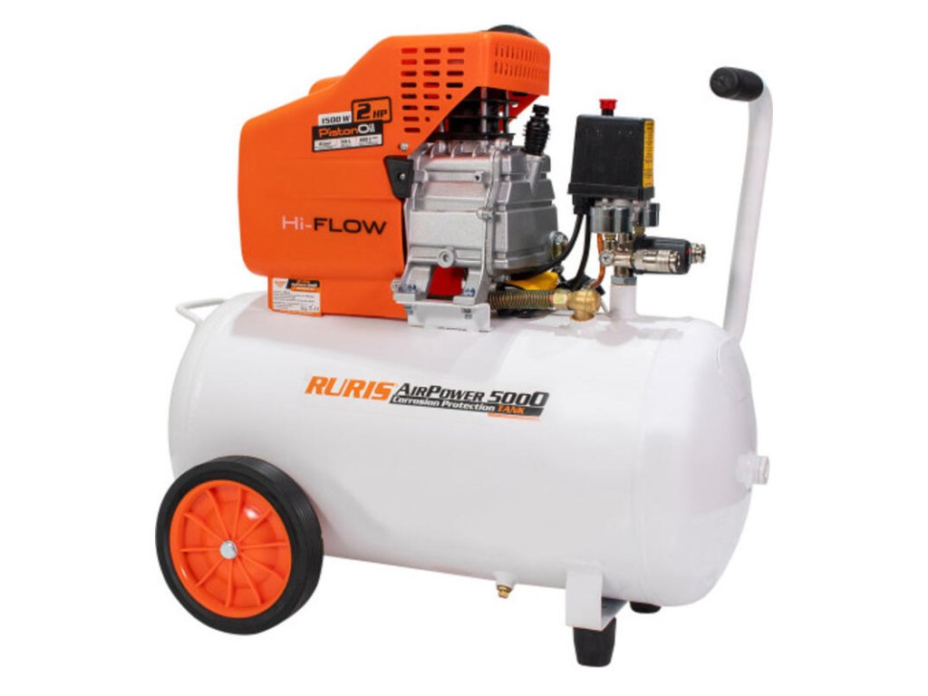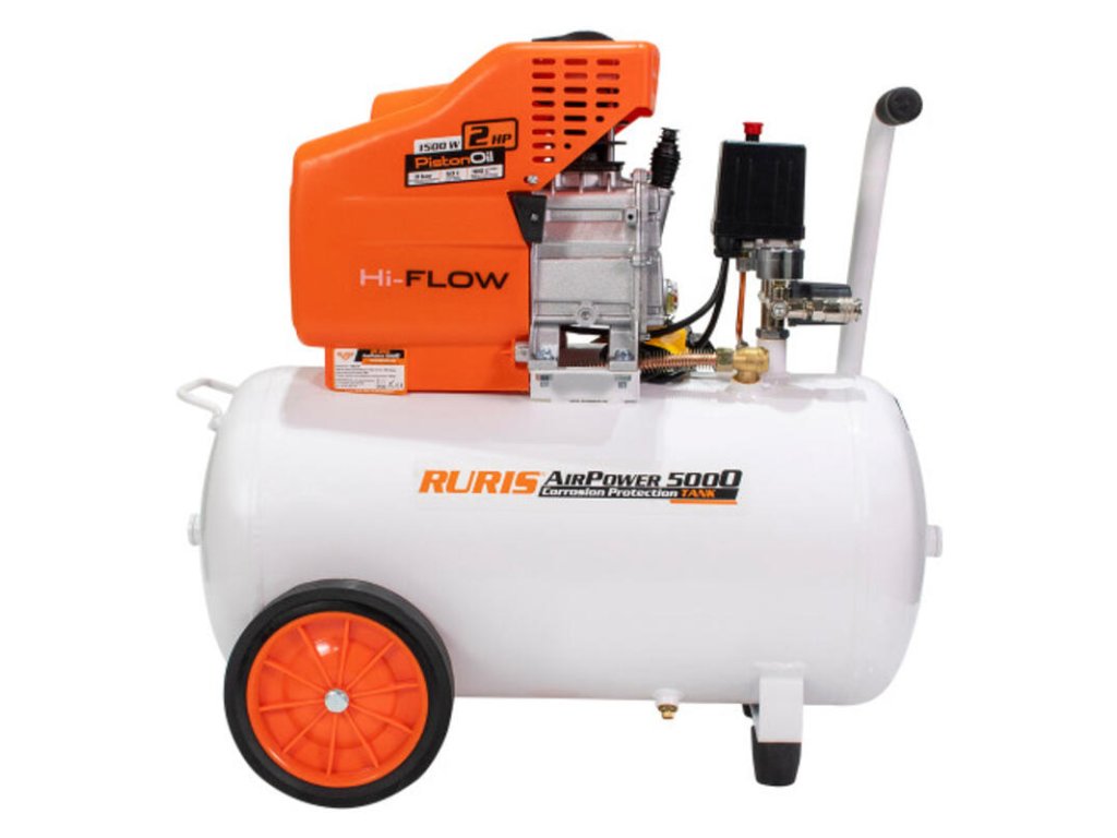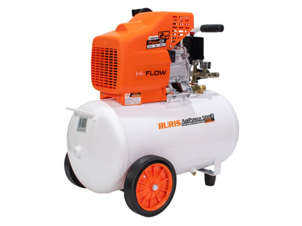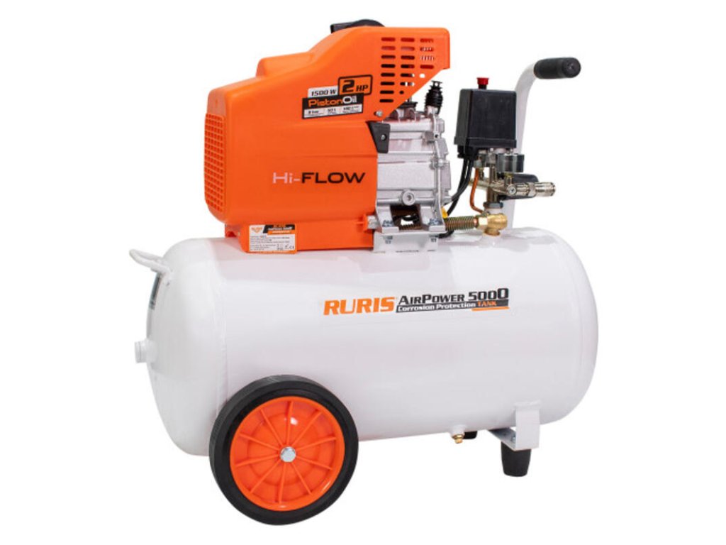 50-litrový valec kompresora RURIS Air Power 5000, ktorým je kompresor vybavený, dokáže dodať veľký objem vzduchu na udržanie tlaku 8 barov po dlhú dobu.