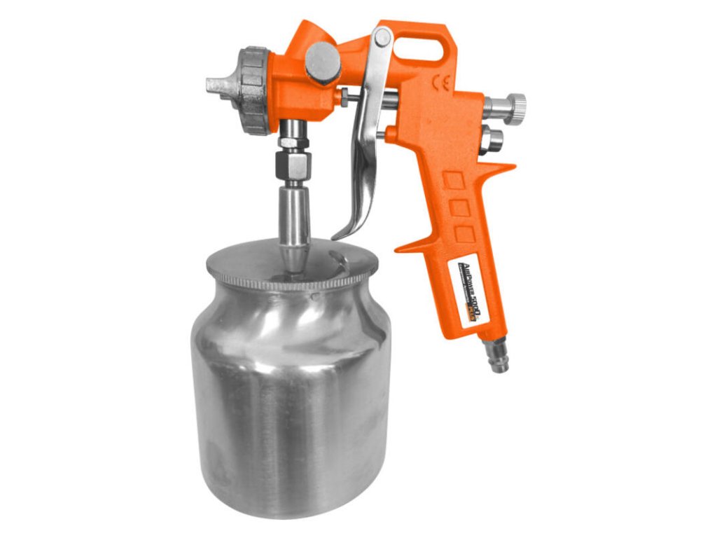 - Striekacia pištoľ s horným kelímkom sa používa na metalické farby, laky, akrylové a vodou riediteľné farby.